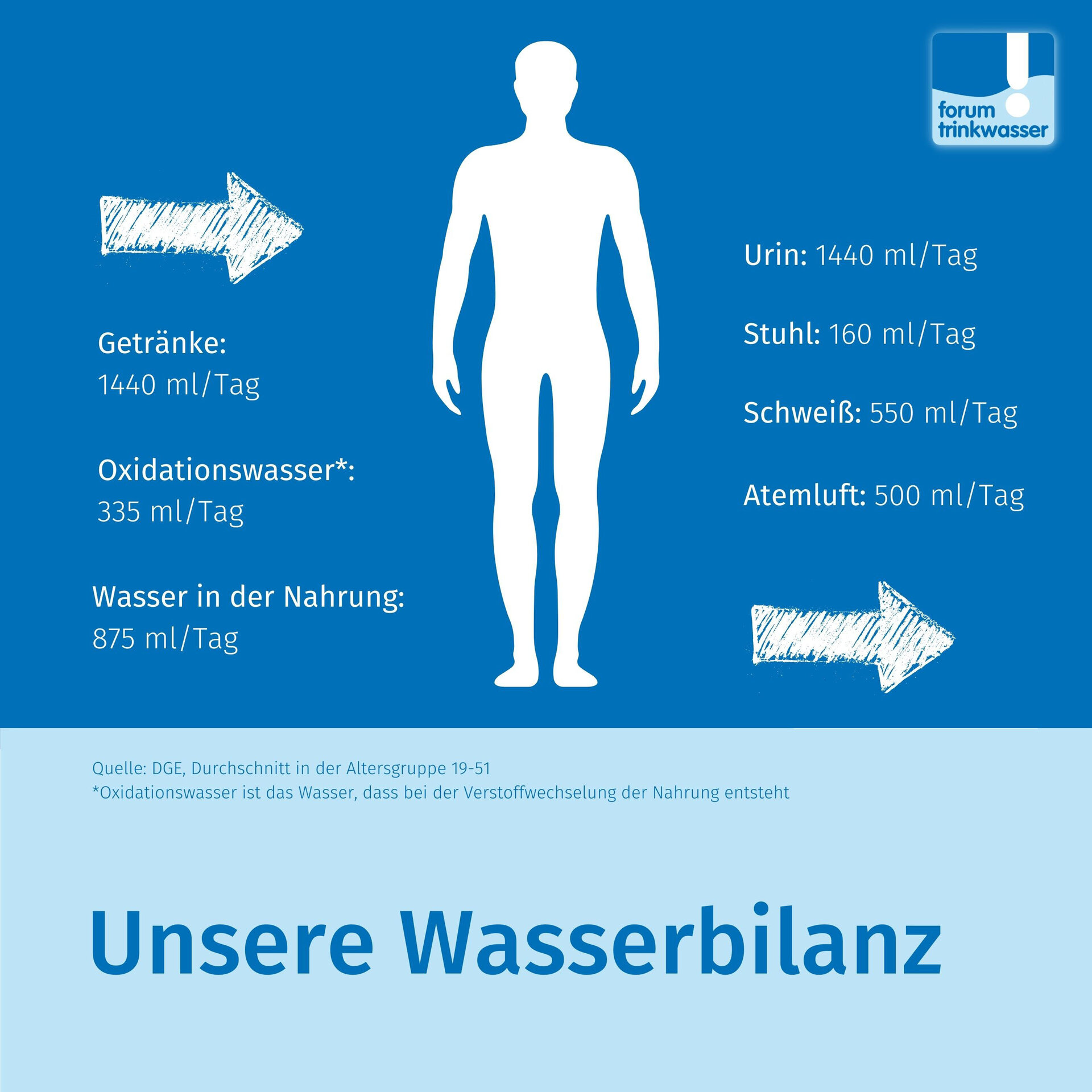 Das Fasten soll die Selbstheilungskräfte des Körpers anregen, ihn reinigen und regenerieren. Doch wer, wie bei vielen Fastenformen üblich, auf feste Nahrung verzichtet, nimmt auch keine Flüssigkeit über Lebensmittel auf. "Dem Körper fehlen damit etwa 1,2 Liter Wasser am Tag, die er normalerweise aus der Nahrung bezieht und die durch das Verbrennen von Fetten und Kohlenhydraten während der Verdauung entstehen", so Dr. Stefan Koch vom Forum Trinkwasser. Koch verweist auf die Deutsche Gesellschaft für Ernährung (DGE): "Die Experten empfehlen, bei normaler Ernährung 1,5 bis 2 Liter Flüssigkeit am Tag aufzunehmen, um den natürlichen Wasserverlust auszugleichen, der durch Schwitzen, Atmen und unsere Ausscheidungen entsteht. Fastet man, muss diese Menge mindestens um die 1,2 Liter Wasser ergänzt werden, die der Körper normalerweise aus der festen Nahrung bezieht."