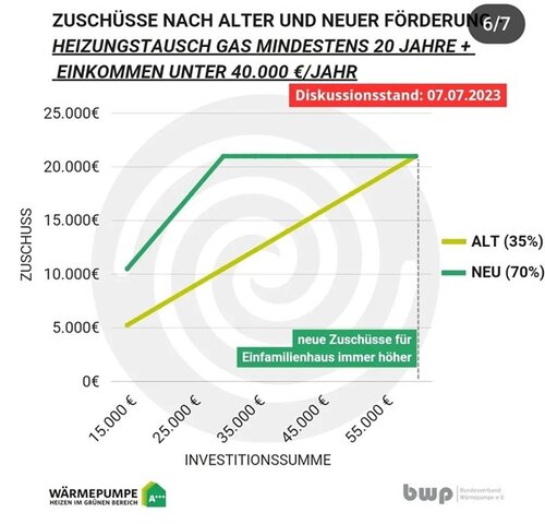 Die prozentualen Fördersätze werden erhöht und können bis zu 70% betragen. Das klingt zunächst verlockend und großzügig. Allerdings halbieren sich die maximal bezuschussbaren Investitionskosten von derzeit 60.000 € auf 30.000 €.