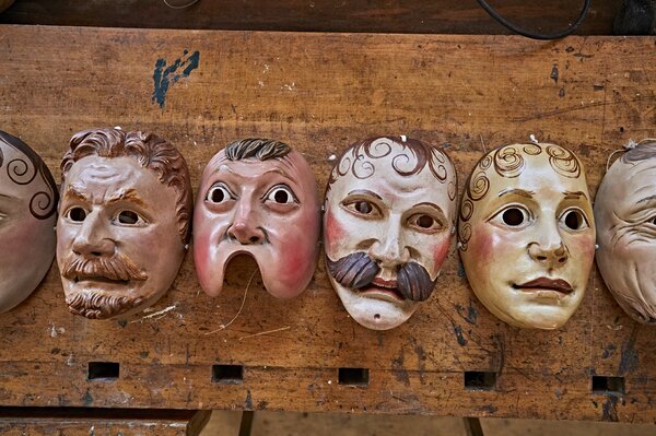 Runde Wangen, ein glatter Teint und ein authentischer Schnauzbart – so sehen die traditionellen Fasnachtsmasken aus Mittenwald aus. Sie alle werden mit kunsthandwerklichem Geschick aus feinem Zirbenholz gearbeitet und werden deswegen auch „Geigenbauerlarven“ genannt.